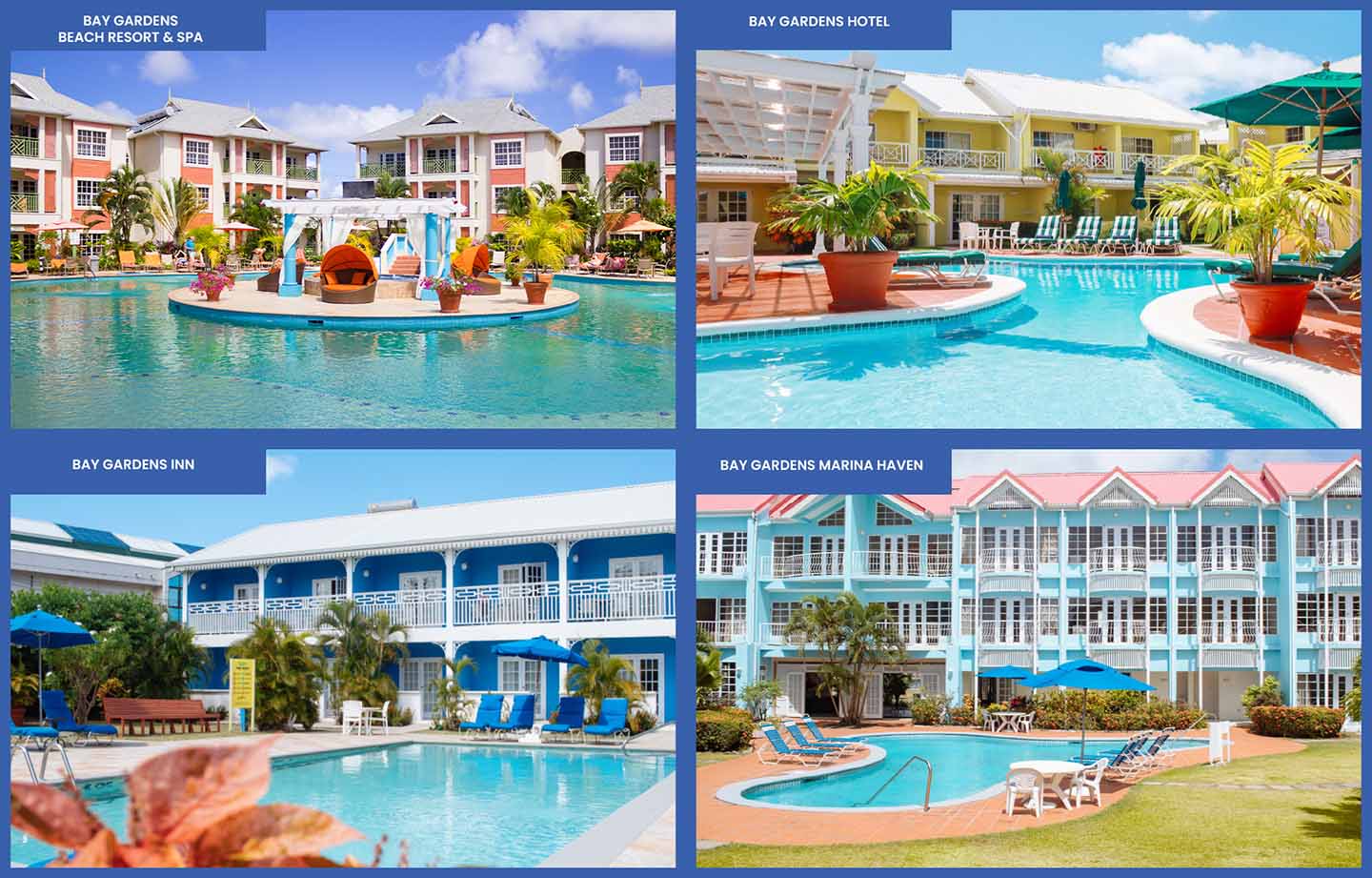 Inclusive of free breakfast daily (at the Bay Gardens Hotel, Bay Gardens Inn & Bay Gardens Marina Haven)